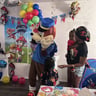 Honestly, the young man was 20 minutes late and barely "filled" the costume. It hung on him. We made the best of it and danced and laughed so it was considered a success. I also want to acknowledge that this was 2 days before Christmas so a hard GIG to fulfill.